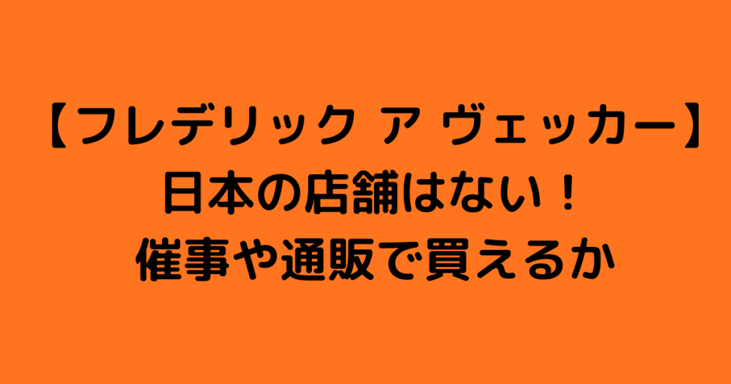 【フレデリック ア ヴェッカー】日本の店舗はない!催事や通販で買えるか